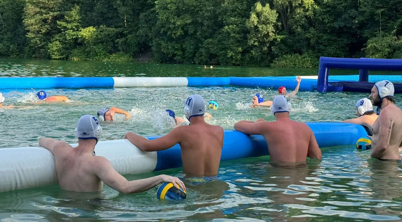 Nach ein paar Verbesserungsvorschlägen und Tipps von den Trainern fing auch schon der erste Wettkampf an. In der Mittagspause konnte man sich nochmal einschwimmen, wenn man wollte, oder einfach spielen und ein bisschen chillen. Es gab ein kleines Becken zum Planschen und sogar einen Volleyballplatz, was total cool war.
