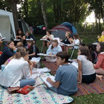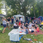 Wir haben uns eine schöne Ecke im Freibad zum Aufstellen der Zelte ausgesucht, aufgebaut und dann ging´s los mit Einschwimmen. Die Stimmung im ganzen Bad war super und alle Schwimmer wurden lautstark angefeuert. Der Tag mit diversen Läufen für jeden Schwimmer verging wie im Flug. Da war die Freude auf die abendliche, schon fast traditionelle, Pizza-Großbestellung riesig. In gemütlicher Runde ließen alle Schwimmer samt Begleitung den Tag ausklingen. Eine Analyse der Videos vom Tag durfte natürlich nicht fehlen, um die Technik für den nächsten Tag noch zu optimieren.